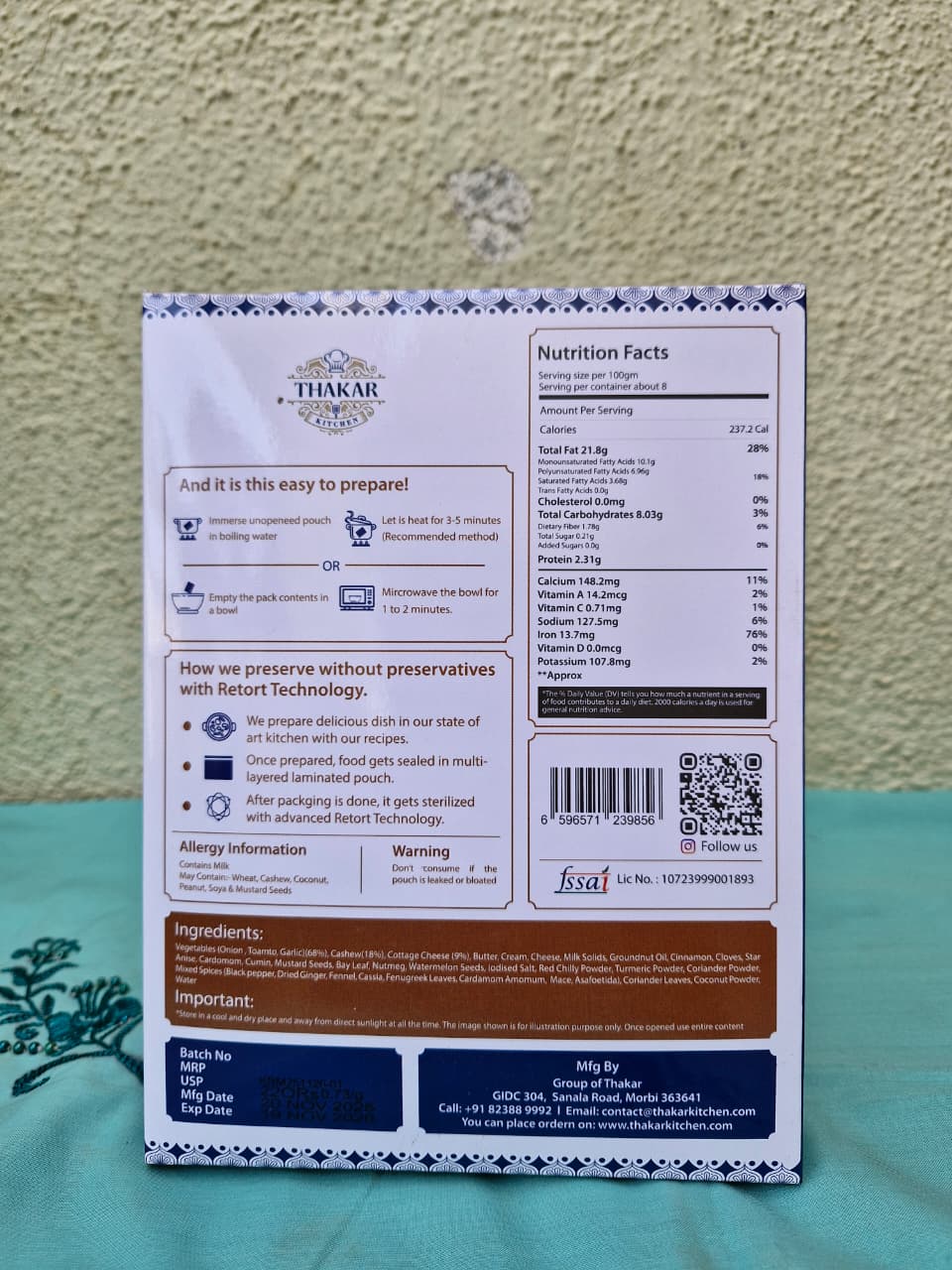 | Process | After opening the packet, please finish the food within 24 hours. |